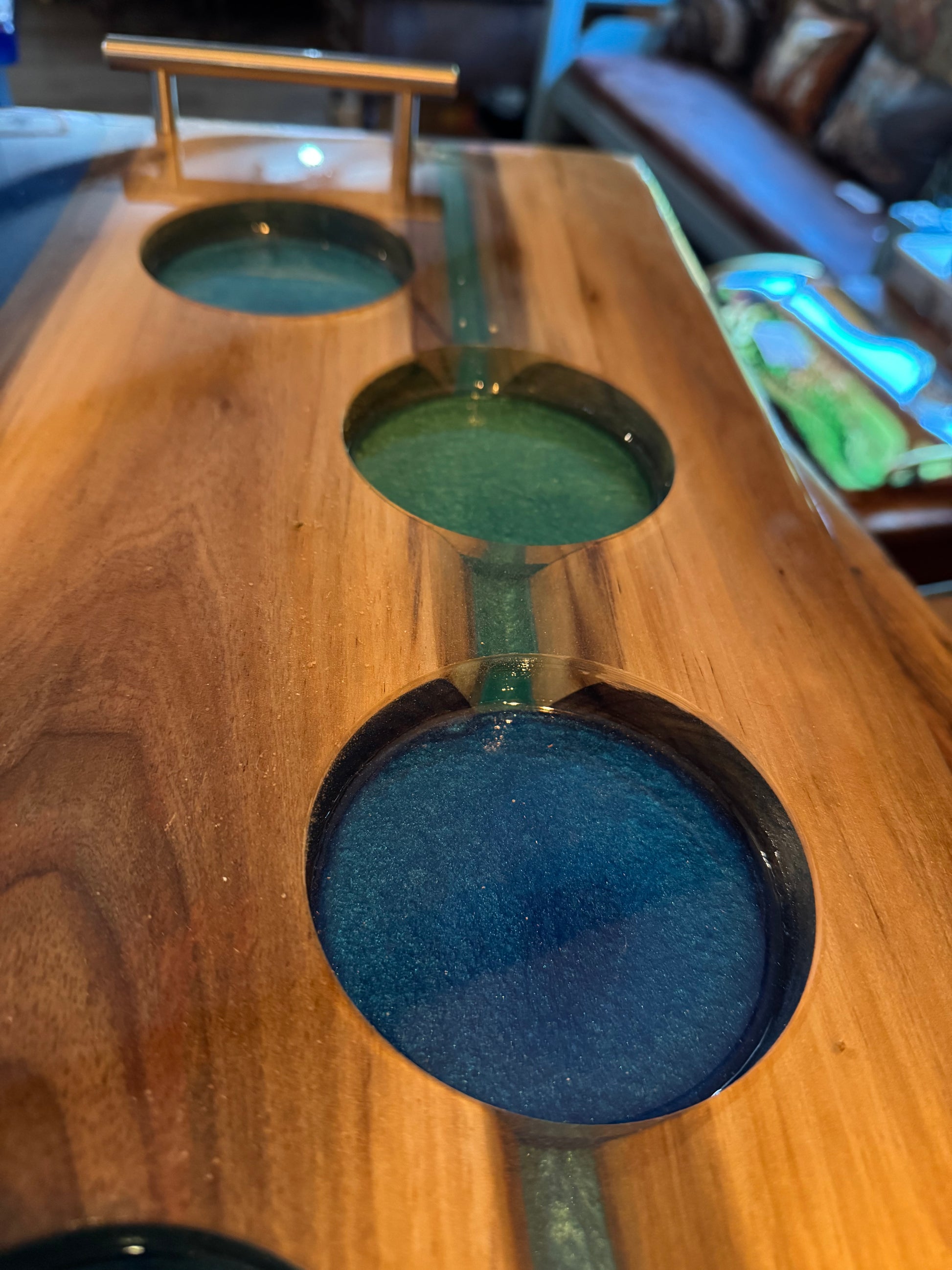 Handcrafted Walnut & Blue Epoxy Bourbon Tray